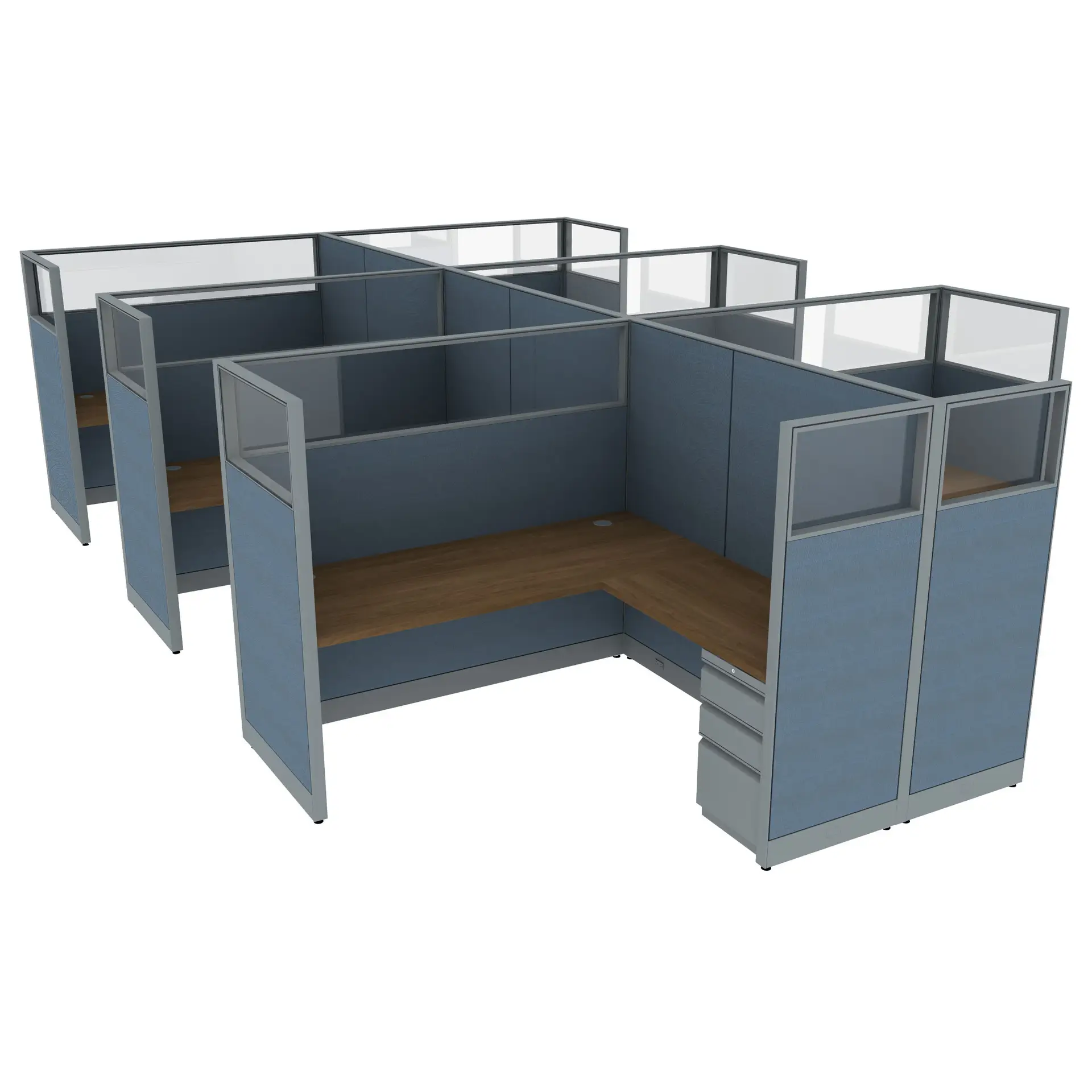 6′ x 6′ L-Shaped Cubicle Workstation 65″H Panel with Framed Glass on Wing Panels