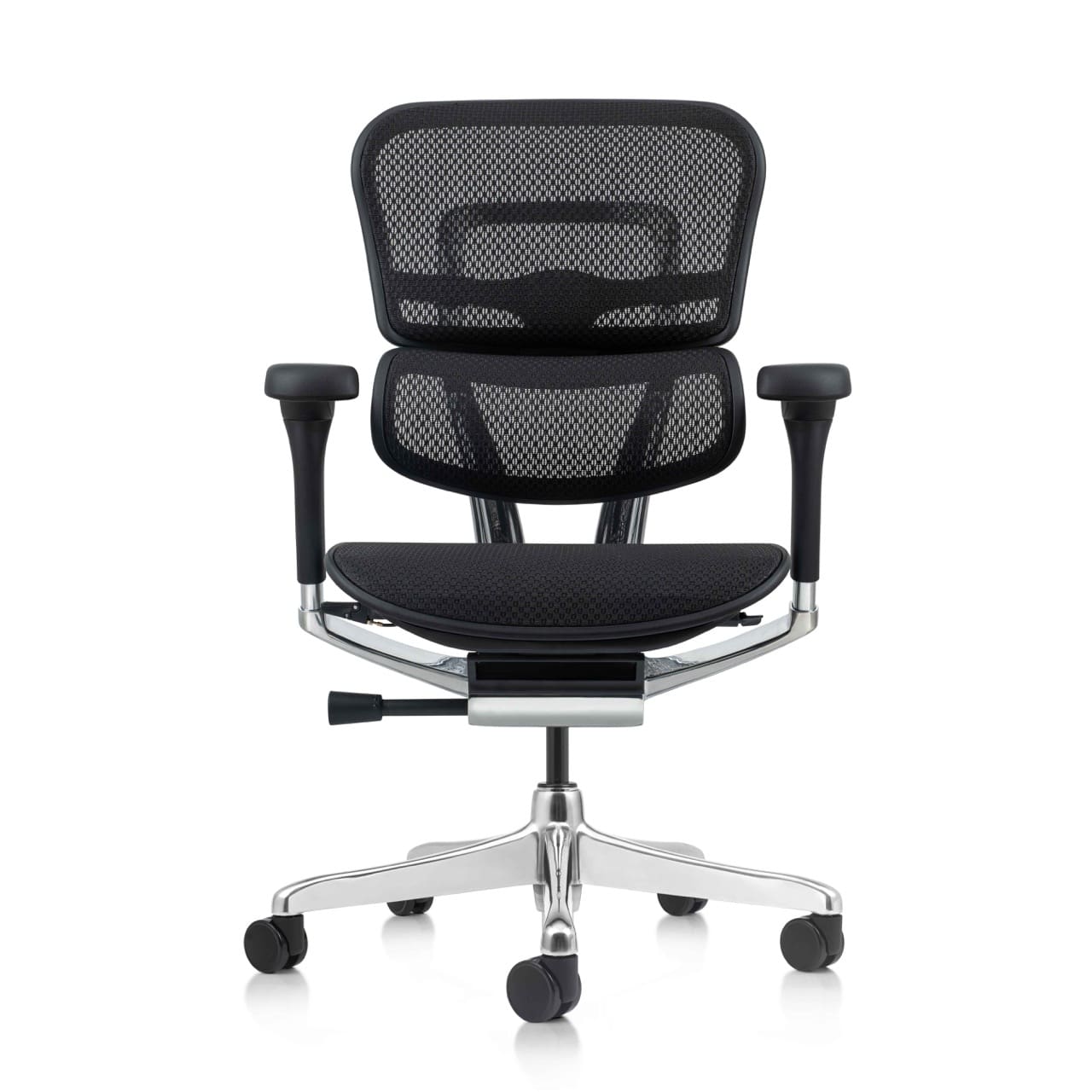 Aesthetics, form and function are merged seamlessly in a single design, and allows the Ergo chairs to be minutely adjusted to achieve unrivaled ergonomic fine tuning. A synchro-tilt mechanism with infinite lock, sliding seat, pneumatic height adjustment, and headrest are options on all Ergo models.