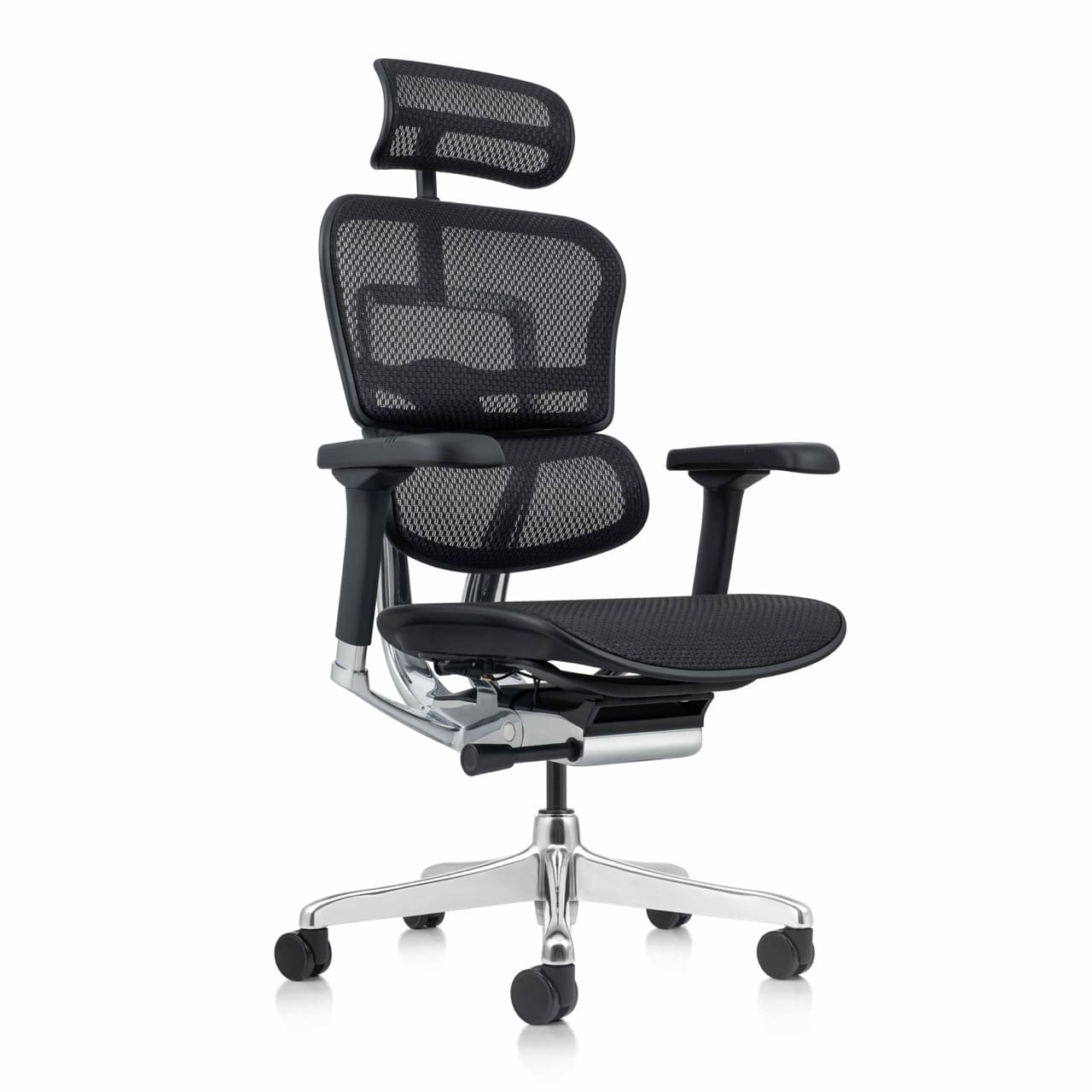 Aesthetics, form and function are merged seamlessly in a single design, and allows the Ergo chairs to be minutely adjusted to achieve unrivaled ergonomic fine tuning. A synchro-tilt mechanism with infinite lock, sliding seat, pneumatic height adjustment, and headrest are options on all Ergo models.