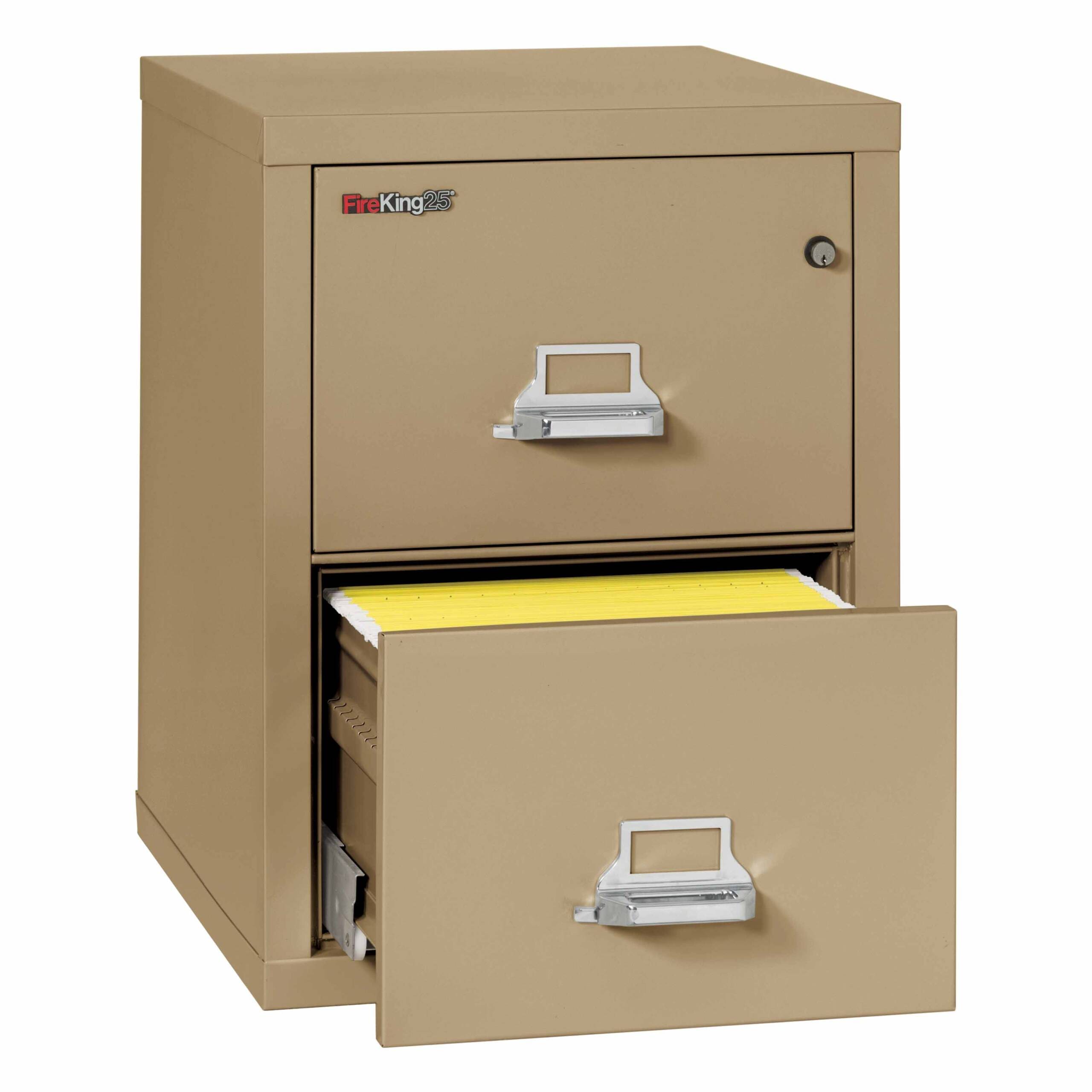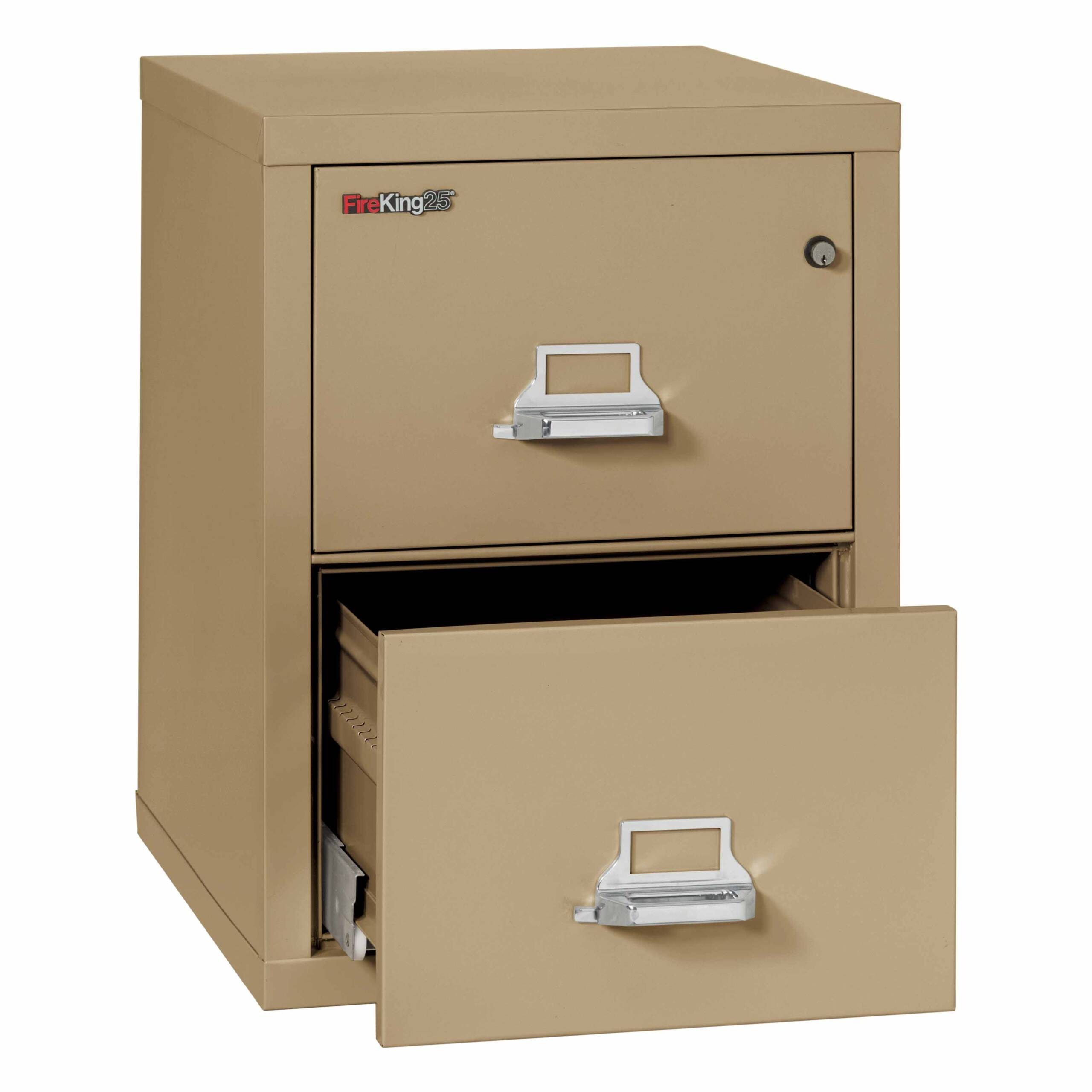1-Hour Fire Resistant Vertical File Cabinet – 2 Drawer Legal Sized with a 25″ depth. When exposed to external temperatures of over 1700°F, the internal temperature of the unit will not exceed 350°F for at least one hour.