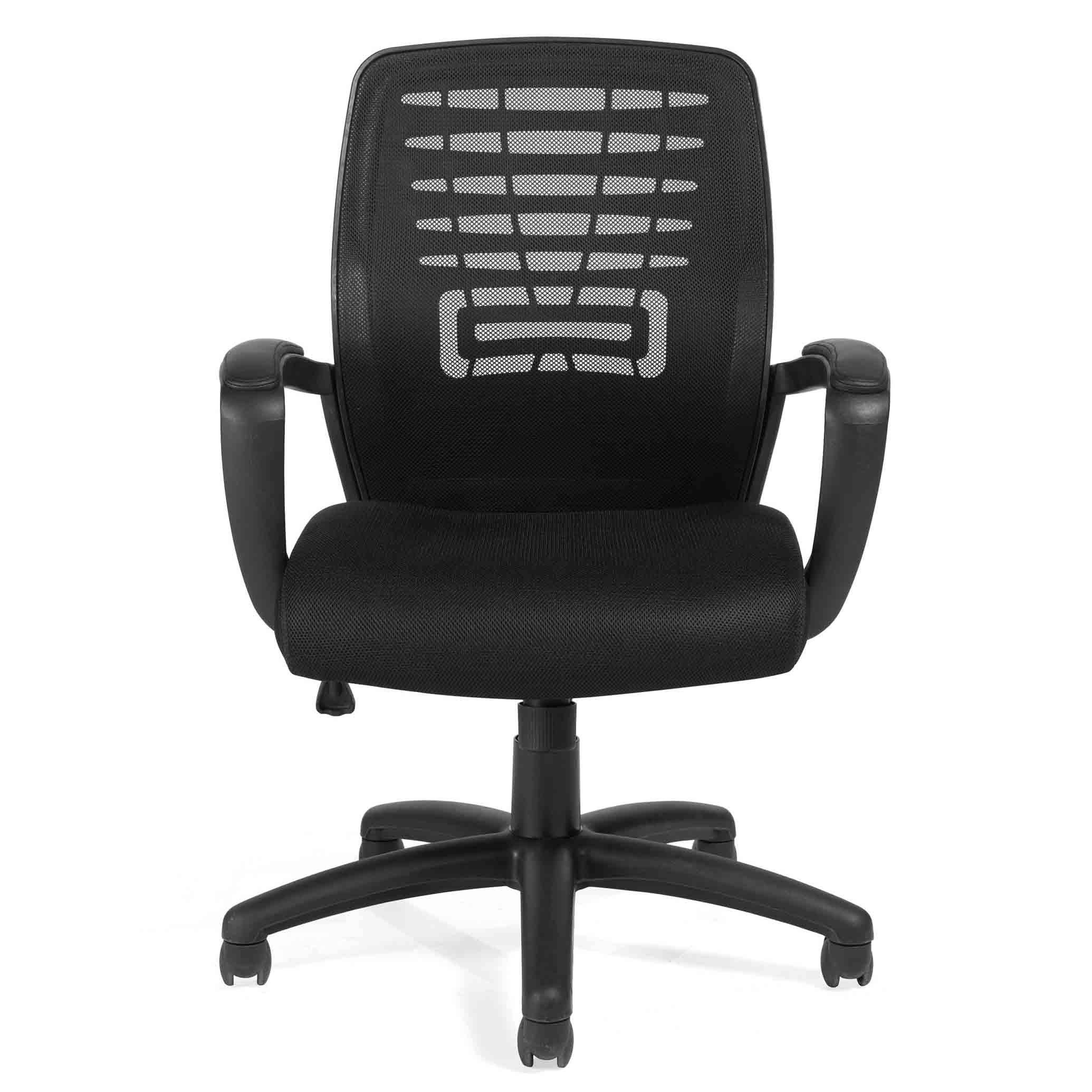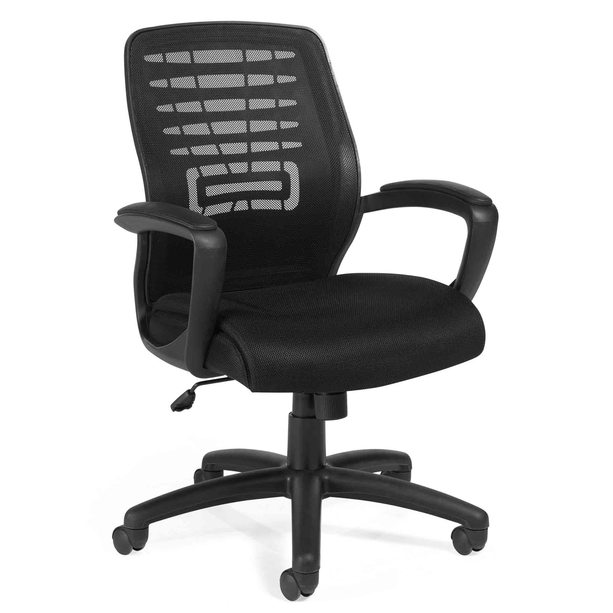 Say goodbye to uncomfortable seating and hello to a supportive black mesh back and breathable fabric seat. With pneumatic seat height adjustment, fixed upholstered armrests, and a single-position tilt lock with tension adjustment, you’ll find the perfect position for maximum comfort.